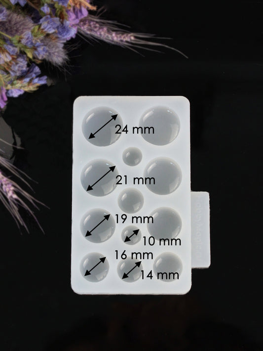 Silicone Mold 17-in-1 Round Shapes | Glossy Resin Jewelry Mold for Earrings, Pendants & Cabochons | Epoxy & UV Resin Craft Tool